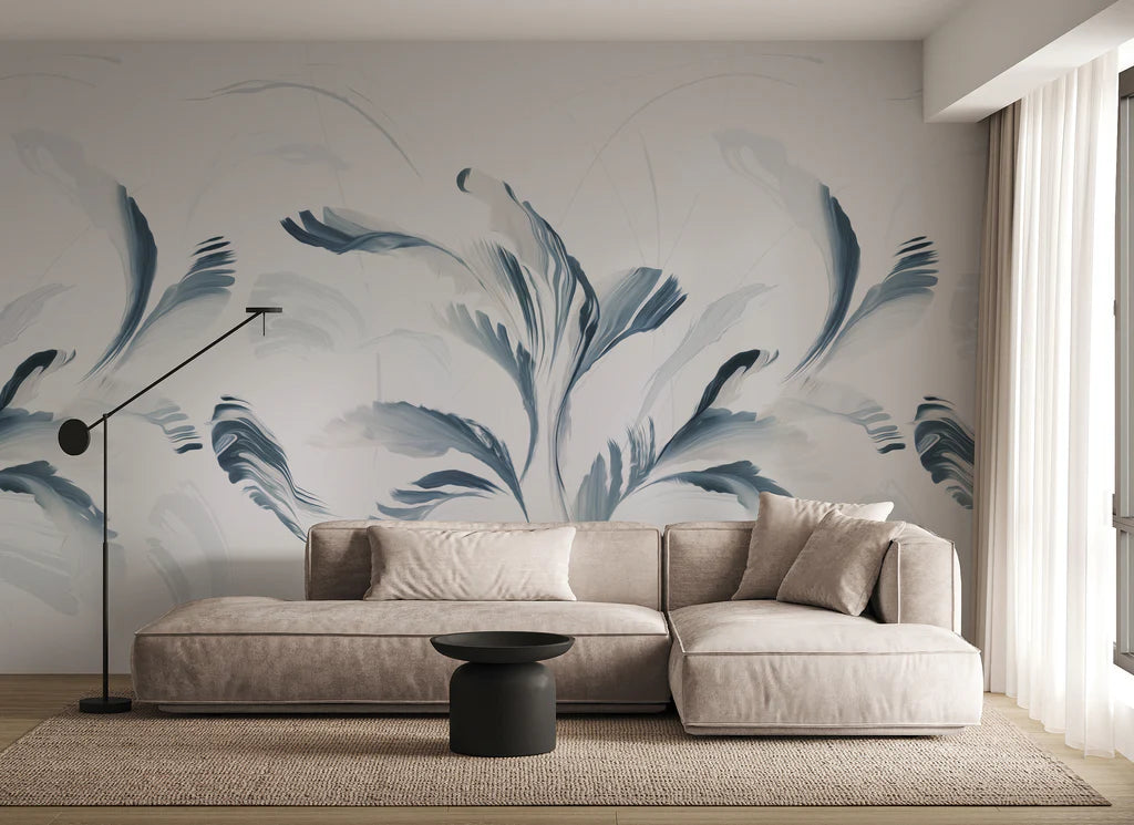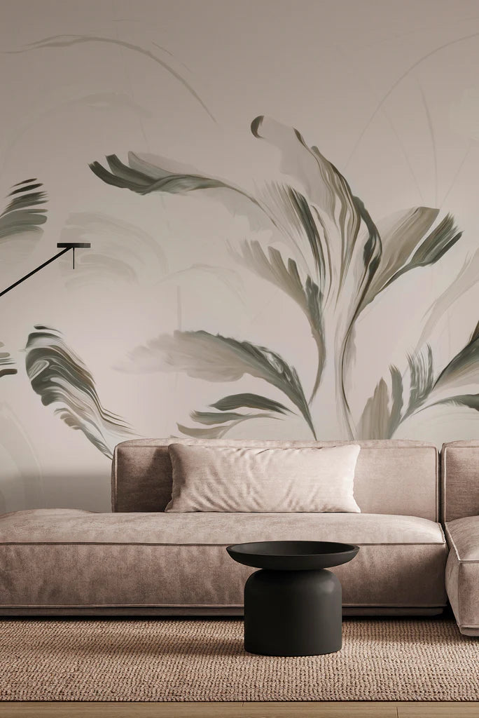 Originally hand-painted in watercolor, the Swirl mural is a more modern, abstract version of a palm design for contemporary interiors.