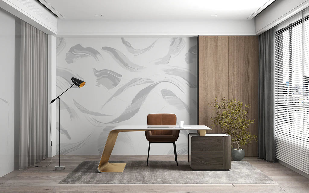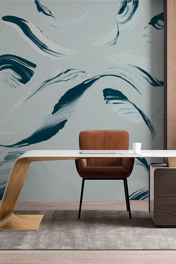 Originally hand painted in watercolors, Waterworld features organic, flowing forms inspired by underwater currents. This is a gorgeous contemporary mural.