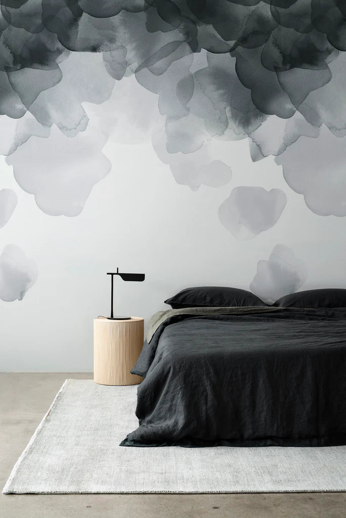 Bloom has become an instant classic in modern wallpaper design. Opaque flowers float from the ceiling down the wall creating an ethereal, modern feel. This wallpaper mural was designed by New Zealand artist Emma Hayes. This is perfect for more modern interiors.