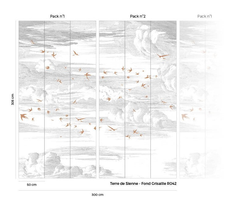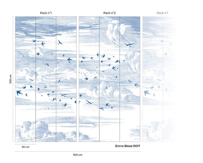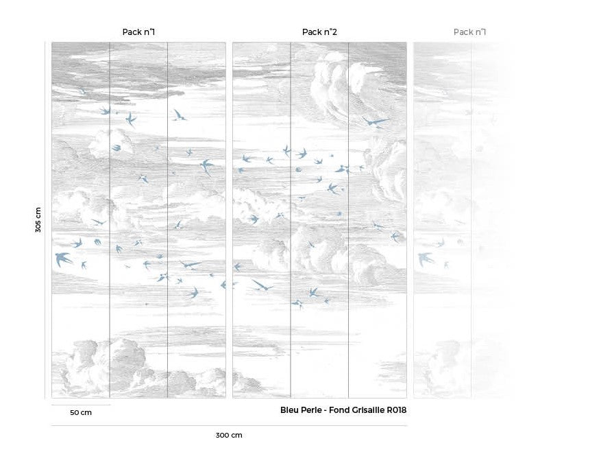 You must purchase both packs (1 & 2) to complete image shown. You can make mural any width by repeating packs 1, 2, 1, 2, 1 etc...Pack 1 matches the end of Pack 2.