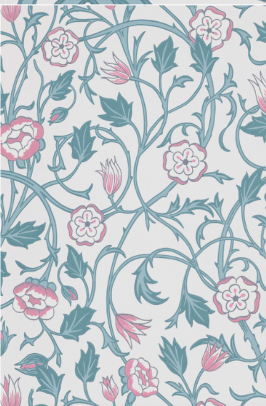 May's Tulip wallpaper is inspired by May Morris the daughter of Arts & Crafts master artist William Morris. May was known for her embroidery and Jewelry work. The stylized flowers and vines are inspired by 19th century weaves.